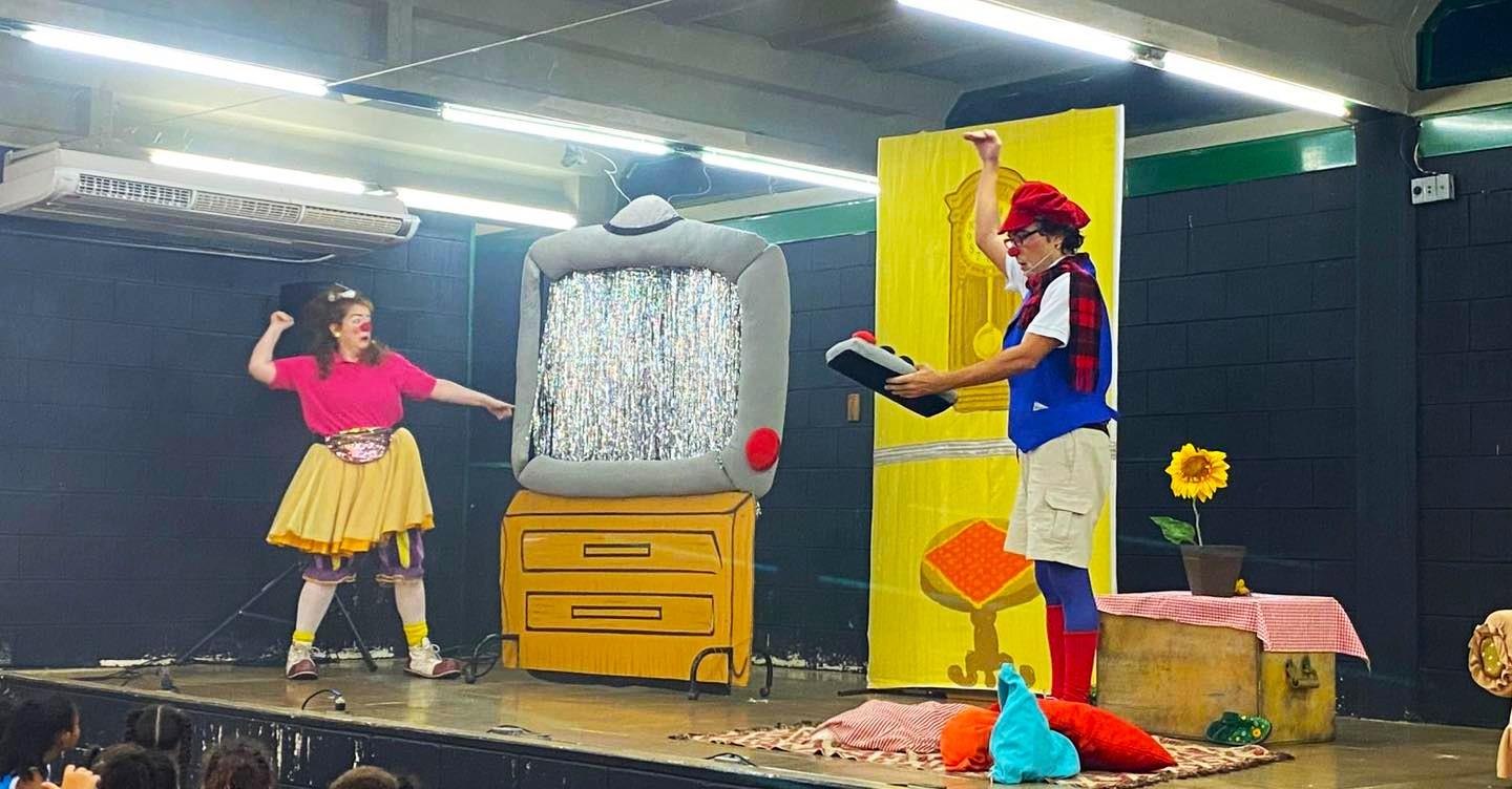 Os alunos da EMEF “Benta Maria Ragassi Scutti” (CAIC) tiveram a oportunidade de assistir ao espetáculo “TV Sem Controle”, apresentado pela Cia. Asfalto de Poesia. De forma lúdica e divertida, a peça utiliza a linguagem da palhaçaria para abordar temas presentes no cotidiano infantil, contribuindo para o desenvolvimento social e emocional das crianças.