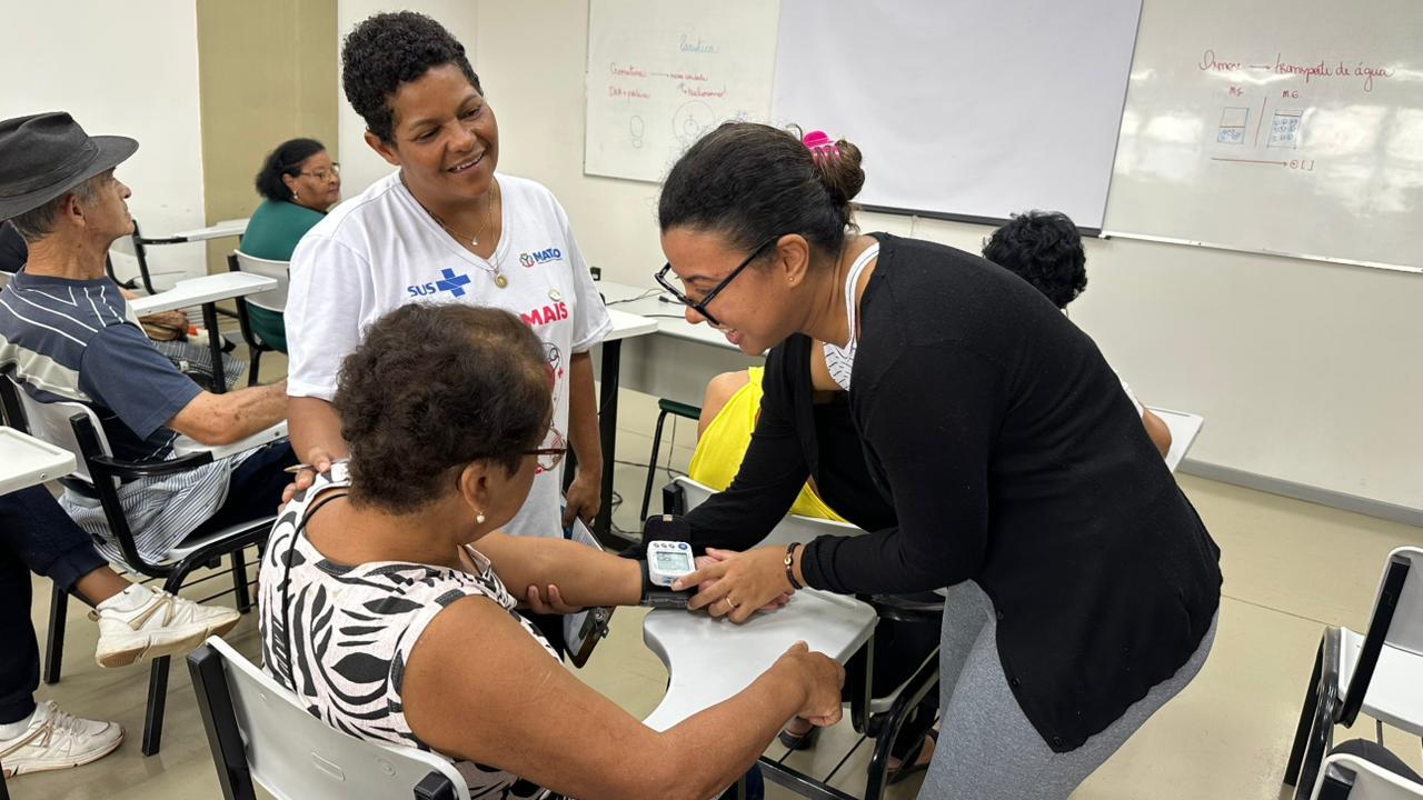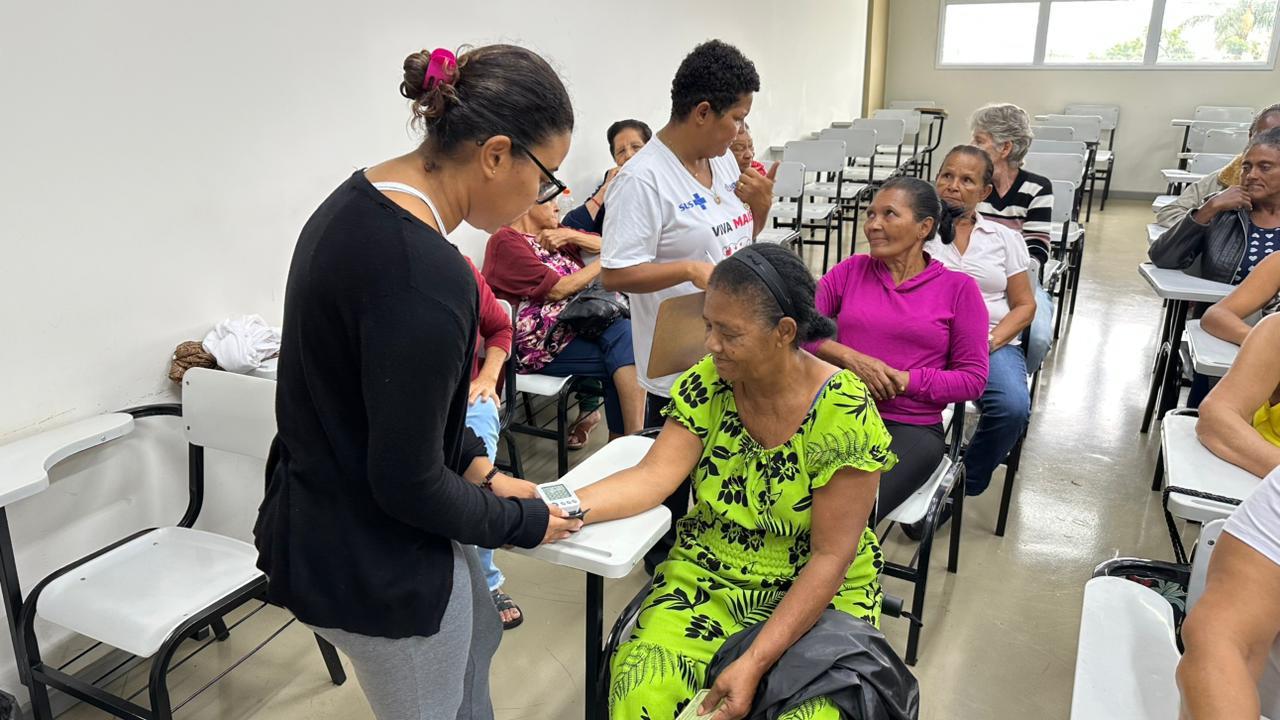 Na sequência as agentes comunitárias do ESF do Residencial Cadioli, Dulce Perez e Isabela Valilla, aferiram a pressão arterial de todas as pessoas presentes, a educadora física Rosa Maria Marques conduziu exercícios e movimentos de acordo com o ritmo e limite dos participantes, e foi servido um ‘nutritivo’ café da manhã.