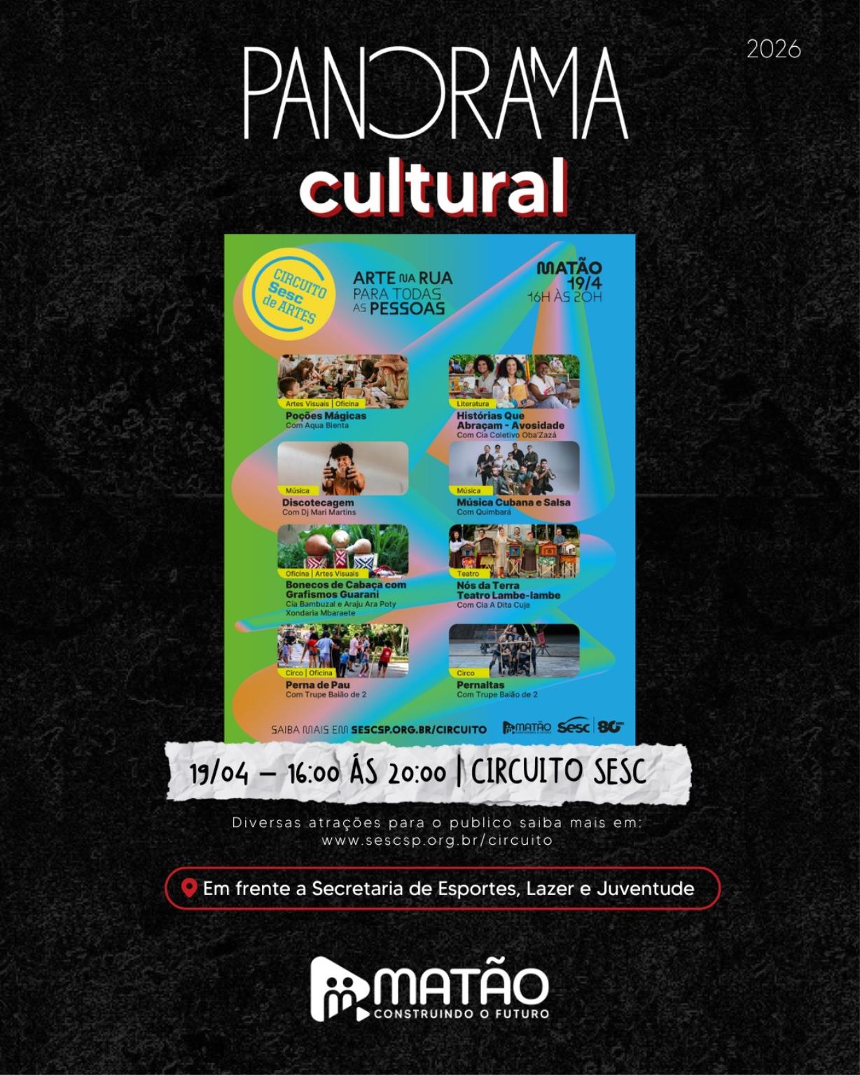 Confira os horários e locais do Panorama Cultural e marque presença!