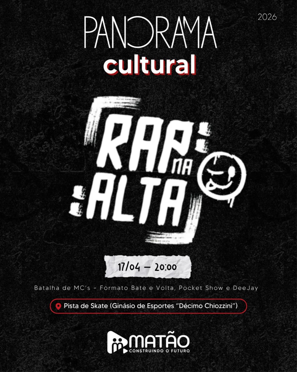Hoje à noite (17), o Rap na Alta traz ‘Batalha de Mcs e Skate no Ginásio de Esportes Décimo Chiozzini.