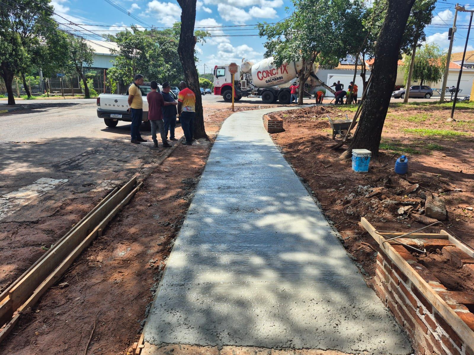 Construção de calçada da Praça próxima ao Senai
