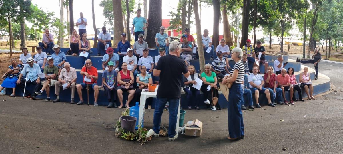 Como separar os resíduos, sejam os galhos provenientes de podas, das folhas, e qual a correta destinação desses resíduos, inclusive dos vidros, que eventualmente ‘aparecem’ descartados nas praças. O objetivo foi elaborar um plano para tratar as questões de educação ambiental; também visitarem a Chácara Florada dos Ipês, na Via Augusto Bambozzi, no bairro Boa Vista, para receberem instruções a respeito do manuseio de abelhas sem ferrão, em um meliponário; foram realizados vários momentos de confraternização, nomeados ‘Café da Manhã Especial’, na Casa da Cultura, aos idosos do ‘Boa Praça’.
